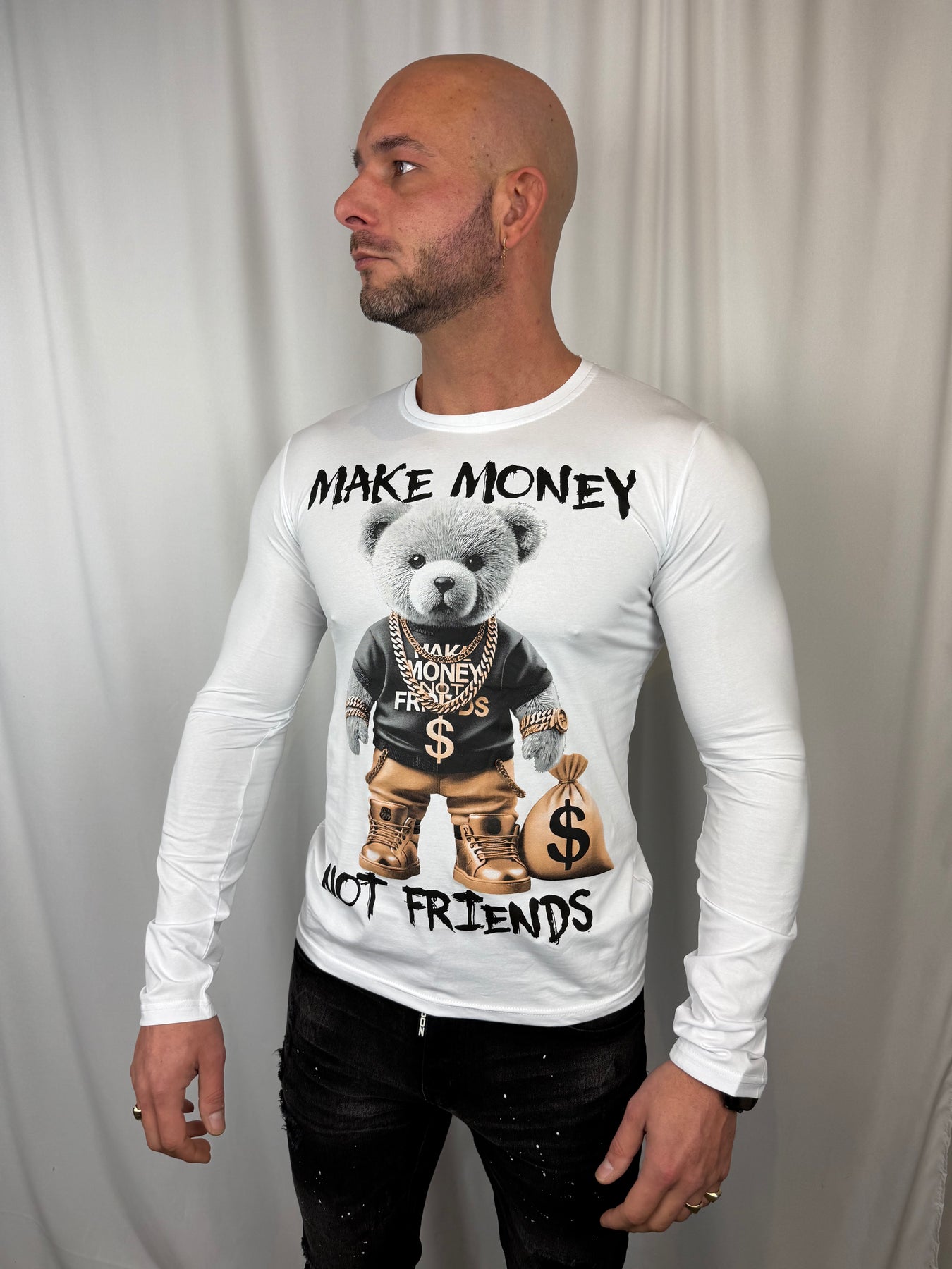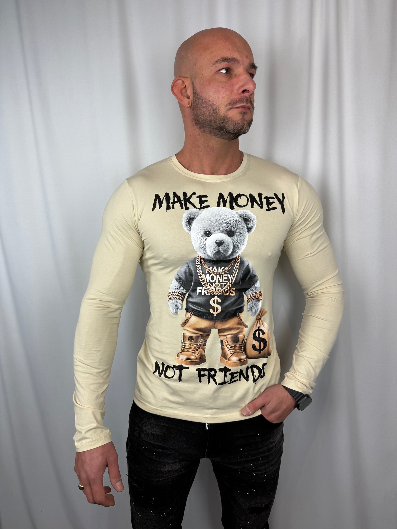 Deze Make Money Not Friends Sweater is gemaakt voor wie streetwear draagt met een statement. De opvallende bear graphic en krachtige tekst zorgen voor een uitgesproken look, terwijl de dunne, soepele stof, Licht genoeg om los te dragen, sterk genoeg om te layeren.