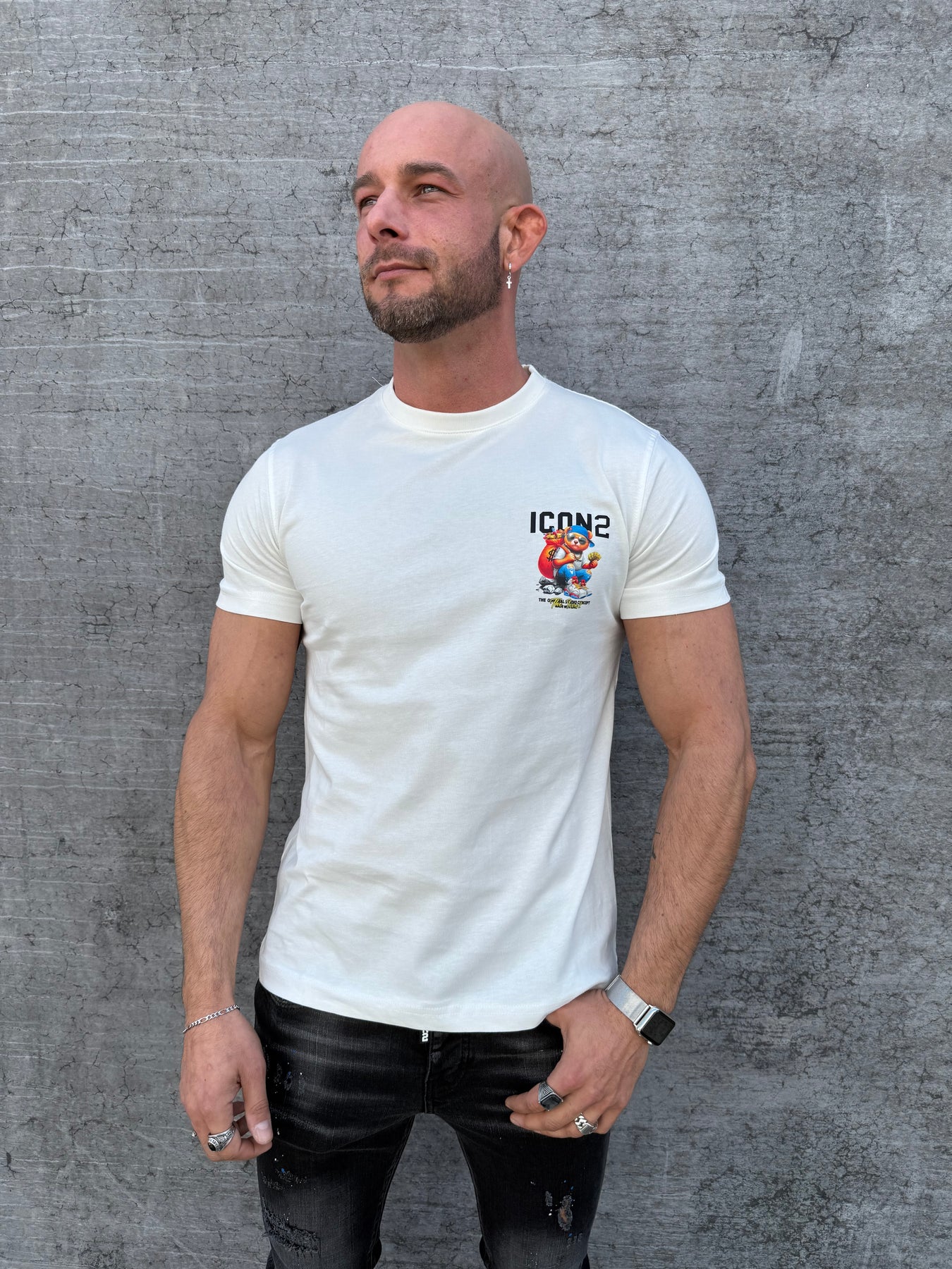 Upgrade je streetwear game met de ICON2 Money Bear Studio Concept T Shirt.  Dit T-shirt is gemaakt van hoogwaardig katoen en combineert comfort met een opvallende look. Op de borst vind je een kleine print met de kleurrijke “Money Bear”, terwijl de rug groots pronkt met dezelfde graphic in full detail. Het design ademt urban vibes en maakt dit shirt een echte eye-catcher.
