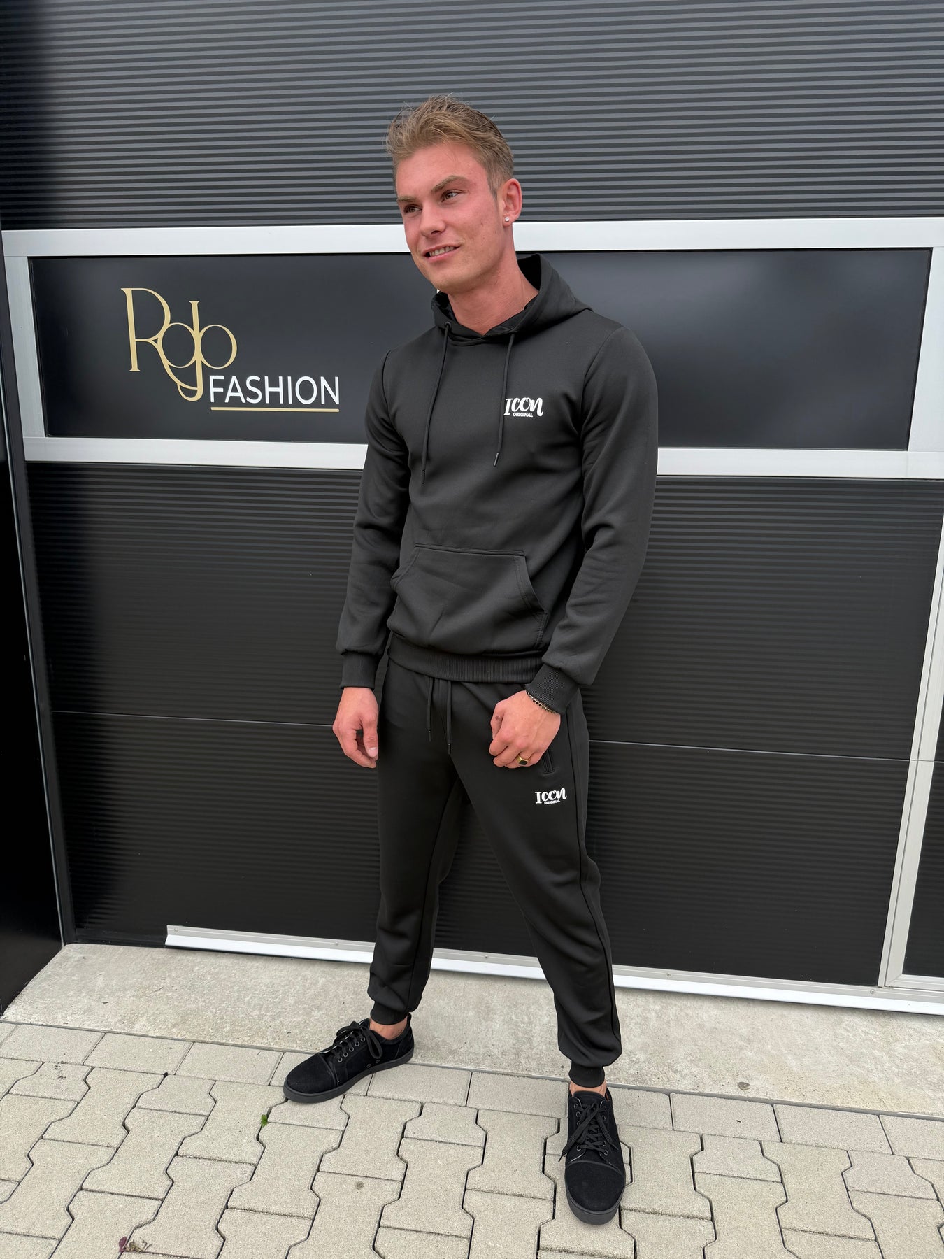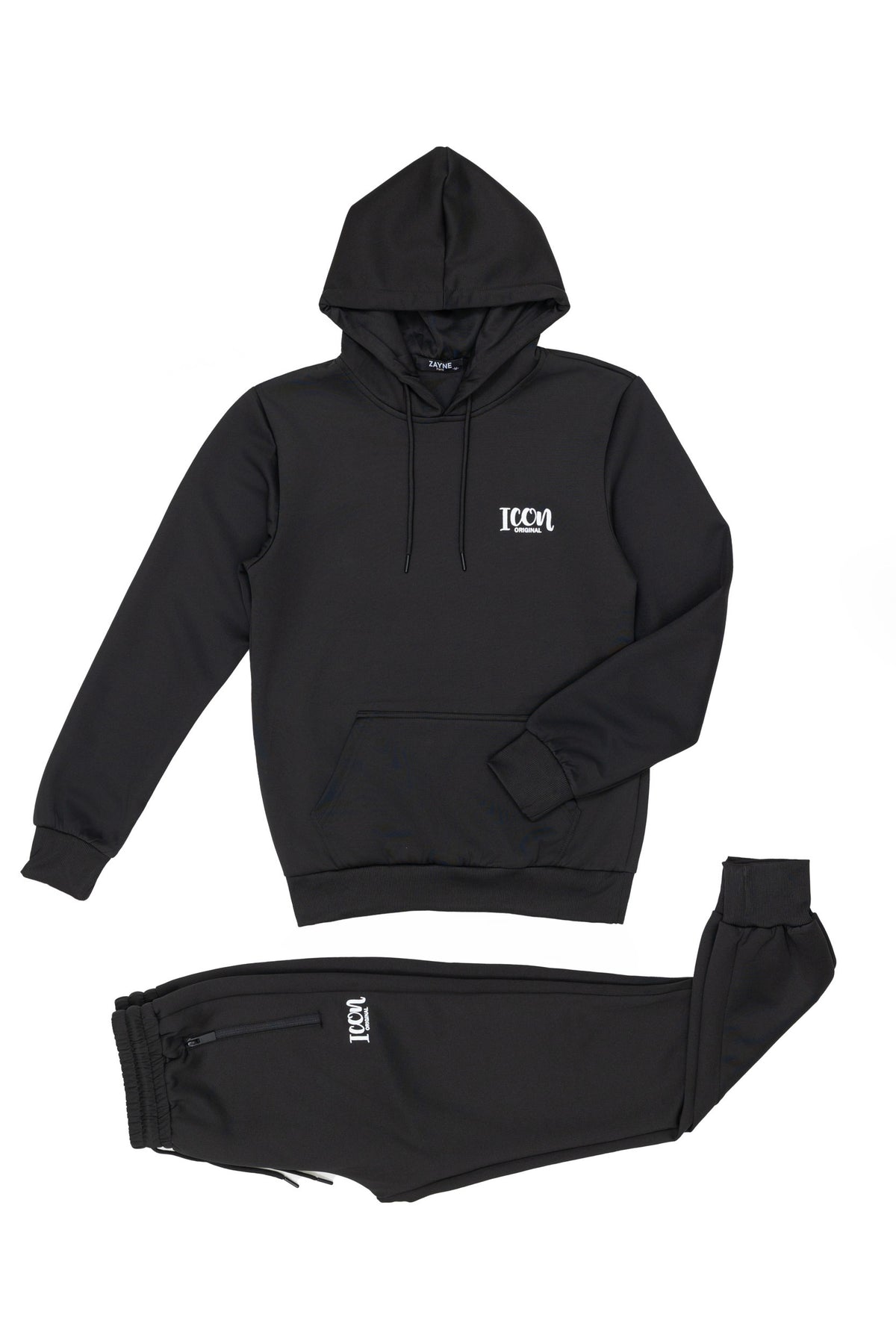 Gemaakt van hoogwaardig stretchmateriaal dat zorgt voor ultiem comfort en een perfecte pasvorm. De hoodie heeft het herkenbare ICON-logo op de borst, terwijl de matching jogger met ritszakken het geheel compleet maakt.