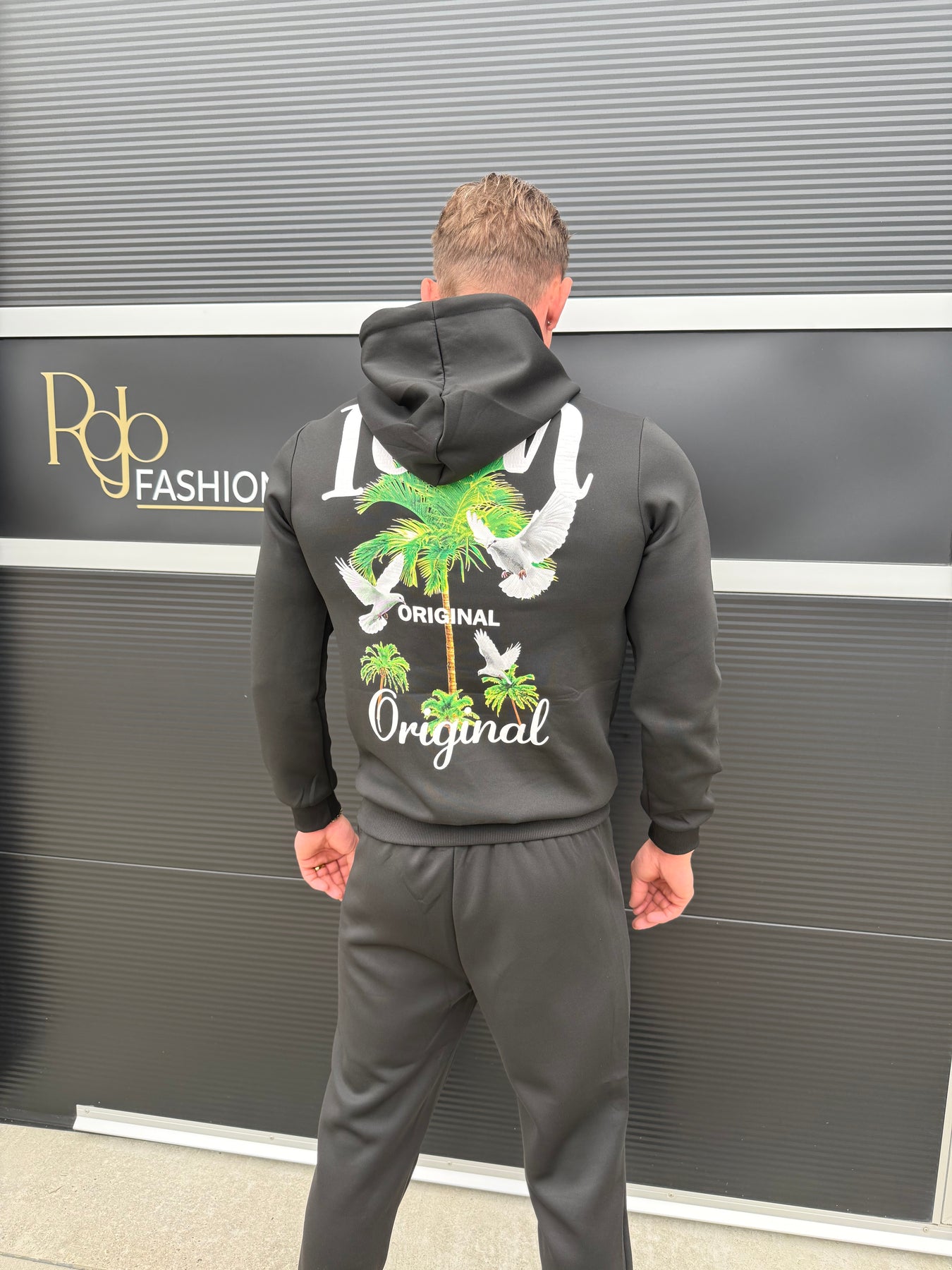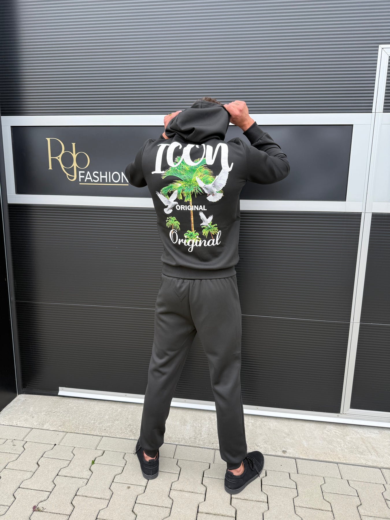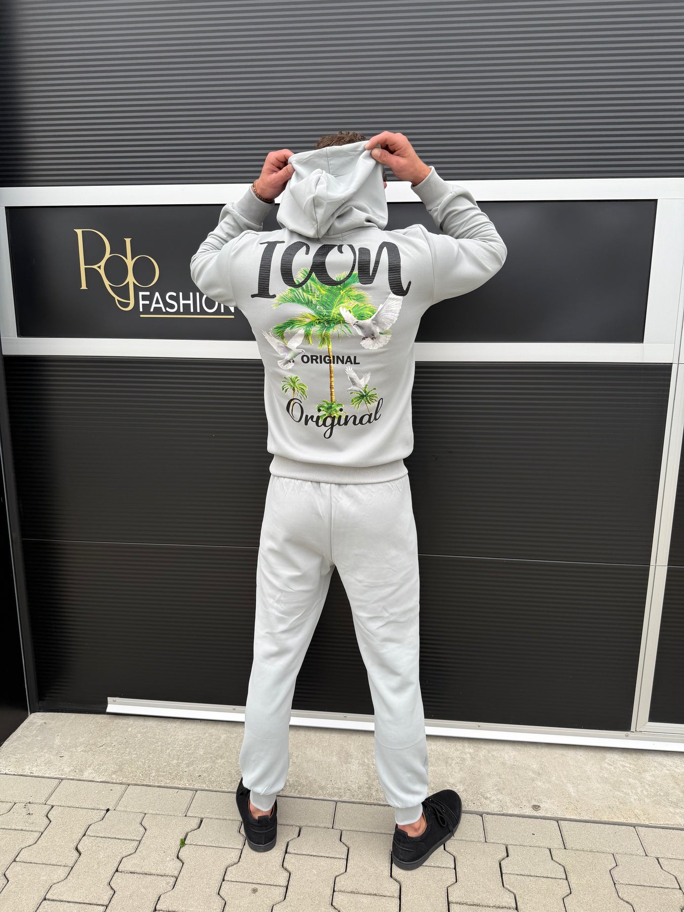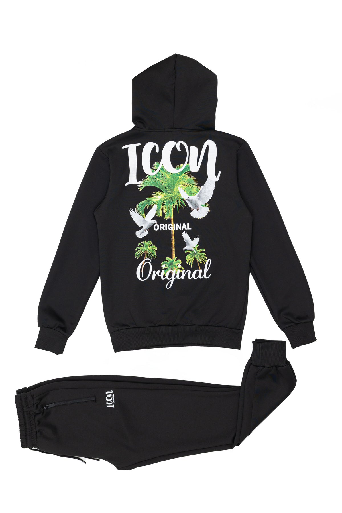 Het ICON Palm Original Spirit Joggingpak brengt energie, attitude en stijl samen in één look. De opvallende palmboomprint met duiven op de achterkant staat symbool voor vrijheid en kracht, precies wat de ICON-lifestyle uitstraalt.